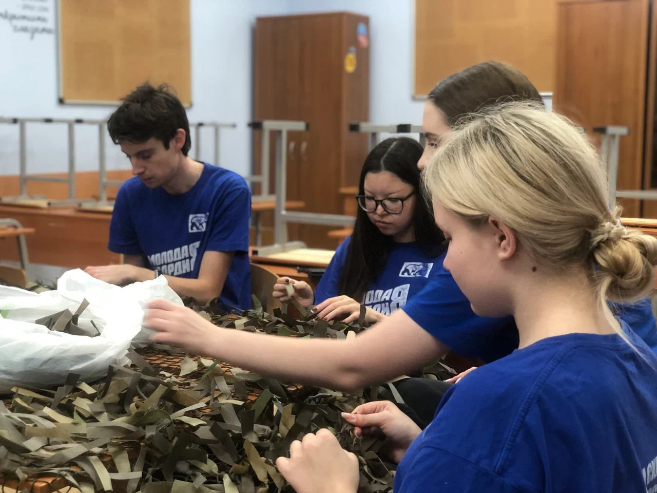 Актив отделения партии "Единая Россия" городского округа Жуковский и волонтеры "Молодой Гвардии" в рамках партийного проекта "Мир возможностей" приняли участие в мастер-классе по плетению маскировочных сетей для участников специальной военной операции.