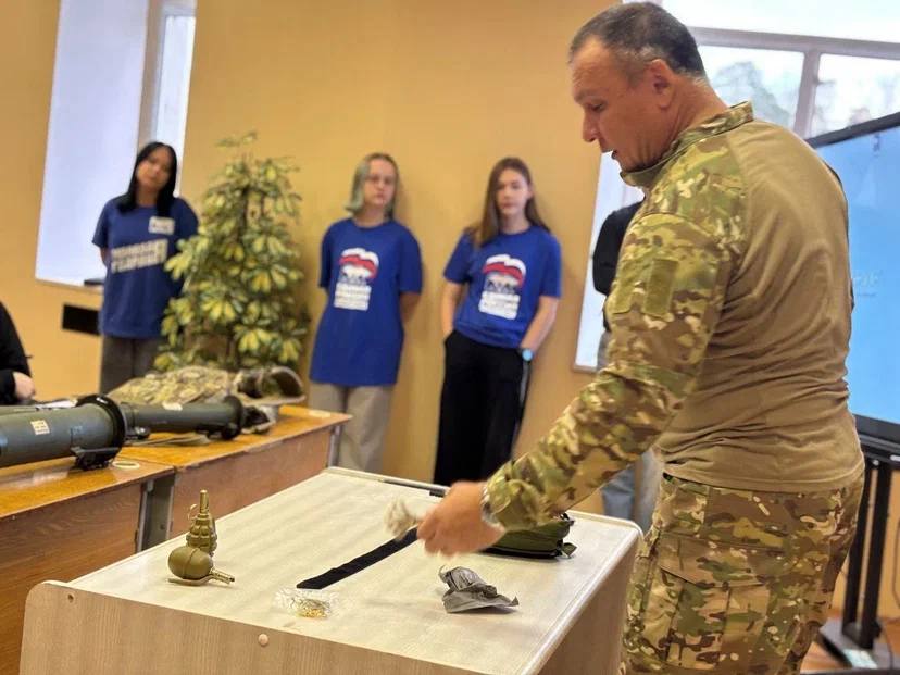 В рамках партийного проекта «Историческая память» депутат Совета депутатов фракции «Единая Россия», местный координатор проекта, Денис Козлов совместно с членом Ассоциации ветеранов СВО Тагиром Хаджимуратовым провели для студентов Авиационного техникума им. В.А. Казакова «Разговор о важном» и практические занятия по тактической медицине.