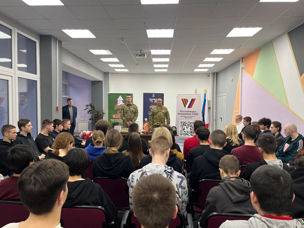 В Жуковском для студентов колледжа «Московия» прошёл тематический «Разговор о важном» и практическое занятие по тактической медицине. Мероприятие состоялось в рамках цикла патриотических мероприятий «Успех в единстве поколений. Его провёл член Ассоциации ветеранов СВО Тагир Хаджимуратов.