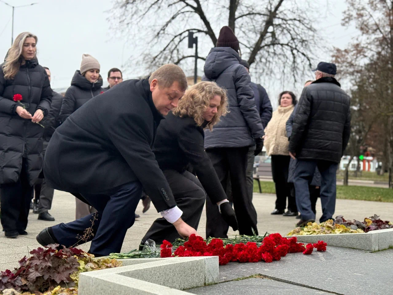 Участники мероприятия, среди которых секретарь местного отделения Партии Андроник Пак, депутаты фракции "Единая Россия", волонтеры "Молодой Гвардии" и неравнодушные жители города, почтили память Николая Егоровича Жуковского и возложили цветы к мемориалу.